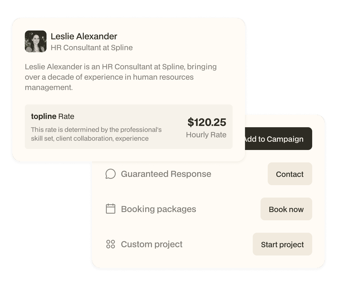 Showcase individual experts with skill badges, case studies, and instant booking links transforming your bench from a cost center into a revenue generator.